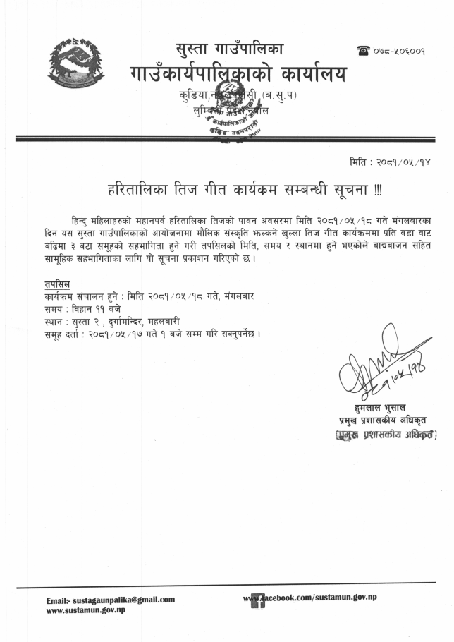 हरितालिका तिज गीत कार्यक्रम सम्बन्धी सूचना !!!