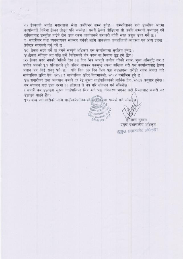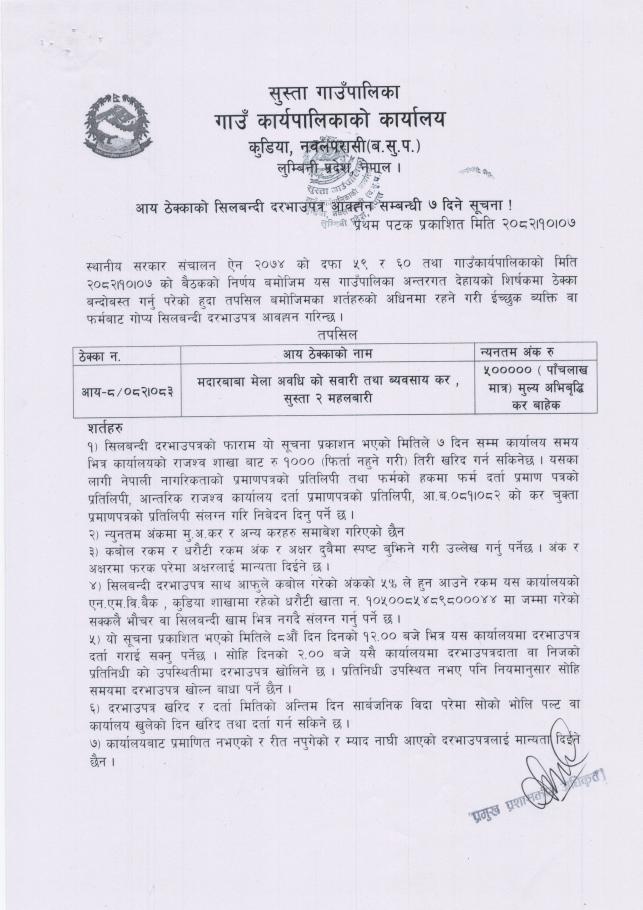 आय ठेक्काको सिलबन्दी दरभाउपत्र आव्हान सम्बन्धी ७ दिने सुचना !